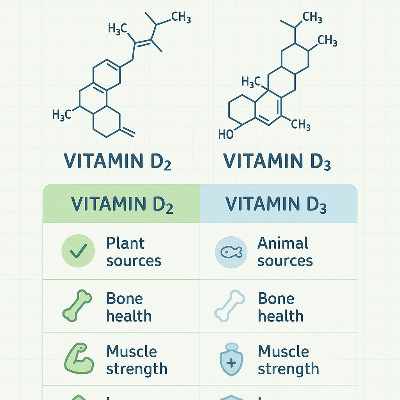 - 비타민 D3 (콜레칼시페롤): 동물성 원료에서 얻으며, 대부분의 연구에서 D2보다 혈중 농도 상승에 효과적이라고 알려져 있습니다. 그래서 시중 보충제도 D3가 많습니다.