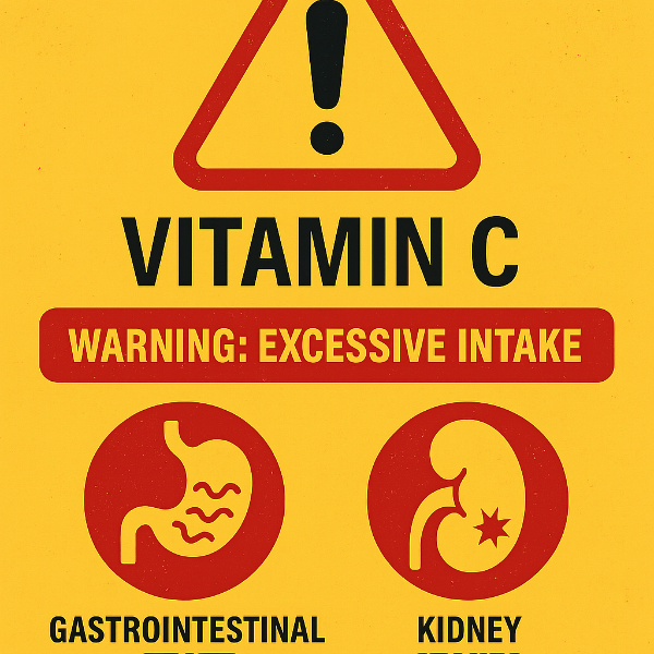 • 신장 결석 위험: 고용량 장기 복용 시 옥살산 생성 증가 → 신장결석 위험 ↑