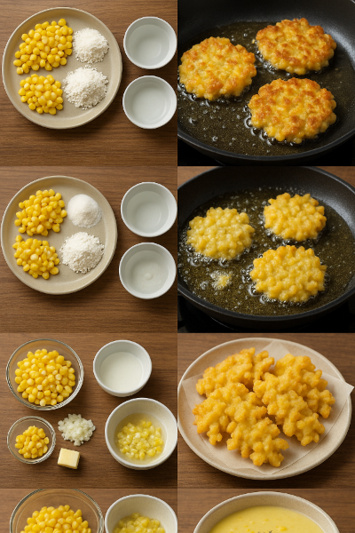 오늘은 옥수수전, 옥수수튀김, 옥수수스프 세 가지 레시피를 소개할게요. 모두 간단한 재료와 짧은 조리 시간으로 완성할 수 있어 바쁜 날 간식이나 반찬으로 딱입니다.
