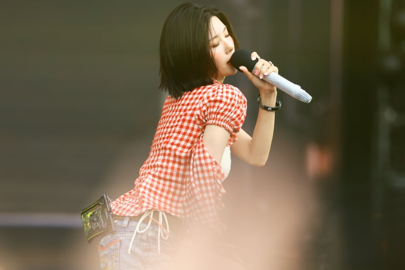 가장 큰 화제는 역시 권은비였어요! 빨간 체크 셔츠에 데님 핫팬츠를 입고 등장한 그녀의 모습은 그야말로 압도적인 카리스마와 자유로운 에너지가 넘쳤답니다! 물방울이 흩날리는 가운데 펼쳐진 그녀의 비욘세 'Crazy in Love' 커버 퍼포먼스는 관객들을 완전히 매료시키며 하루 만에 200만 조회수를 돌파했어요! 😍