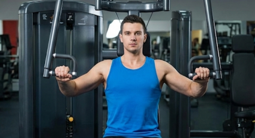 - [가슴] 체스트 프레스 머신 (Chest Press Machine): 벤치프레스의 머신 버전입니다. 손잡이가 가슴 중앙이나 약간 하단에 오도록 의자 높이를 조절하고, 어깨가 위로 들리지 않게 고정한 상태로 밀어냅니다.