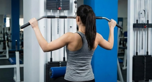 - [등] 렛 풀 다운 (Lat Pull Down): 턱걸이를 대신하는 대표적인 등 운동입니다. 팔로 당긴다는 느낌보다, 팔꿈치로 옆구리를 찍어 내린다는 느낌으로 등의 광배근을 사용해야 합니다. 허리를 과도하게 꺾지 마세요.