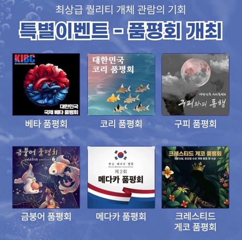 • 품평회 (Competition & Judging Show): 국내외 전문가가 참여해 우수 품종 및 사육 기술을 평가·시상하며, 관상어 산업 경쟁력 강화와 글로벌 시장 진출 기반 마련