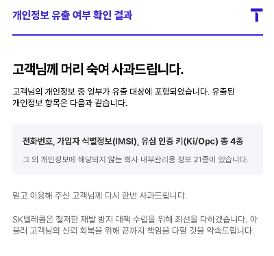 이번 SKT 개인정보 유출 조회 서비스는 고객들의 알 권리를 보장하고 투명한 정보 제공을 위한 중요한 조치입니다. 해당 서비스를 통해 본인의 개인정보 유출 여부를 확인하고, 필요한 보안 조치를 취하시기 바랍니다.